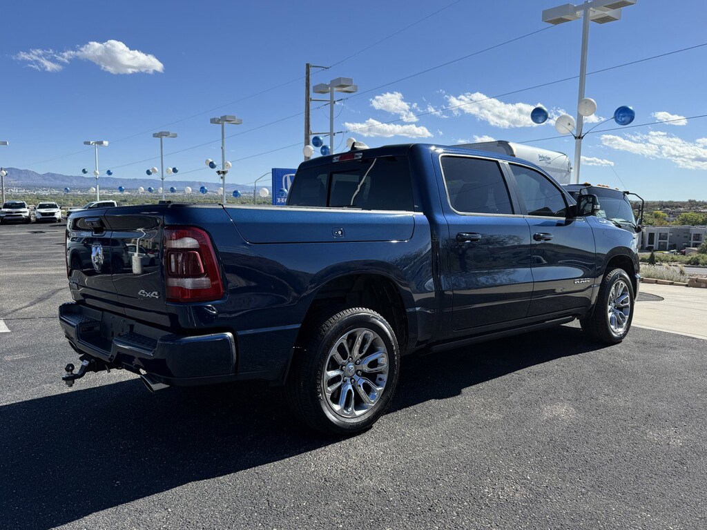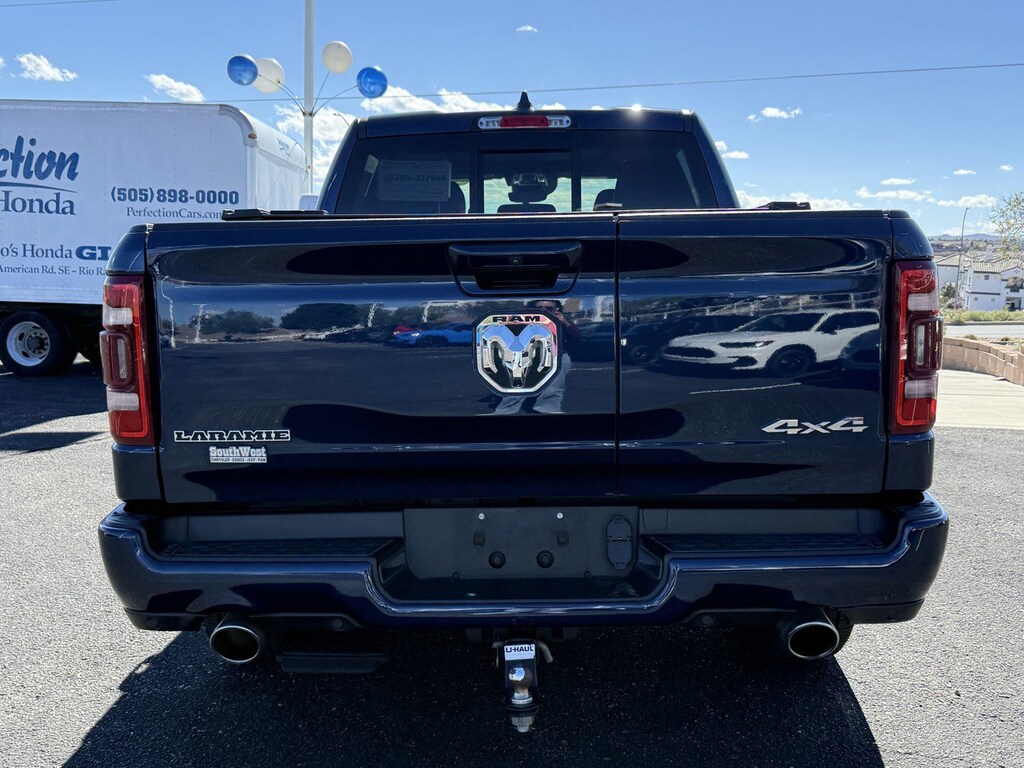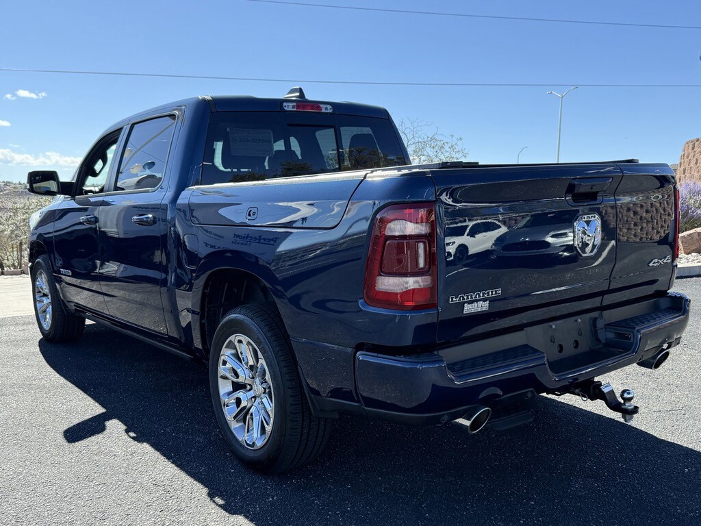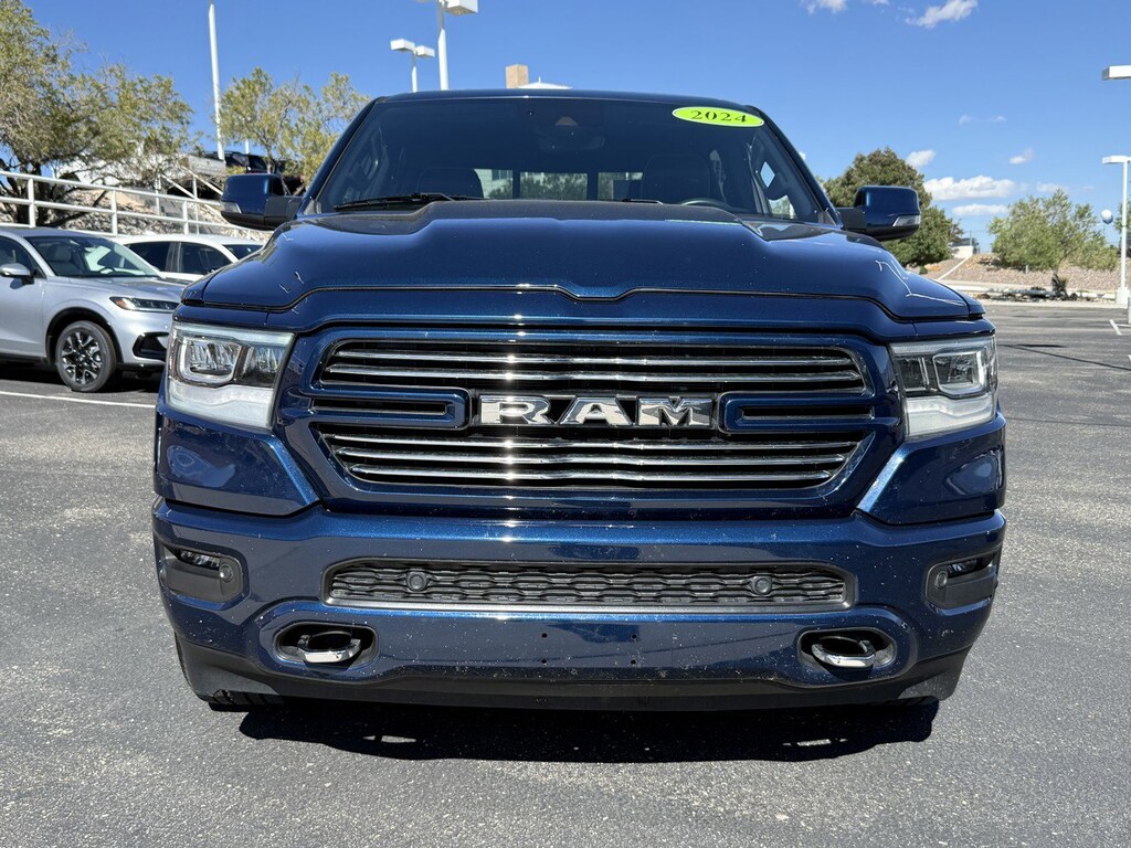 *CLEAN CARFAX*, *ONE OWNER*, *LEATHER*, *LOCAL TRADE*, *KEYLESS ENTRY*, *MOONROOF*, *HEATED SEATS*, **PREMIUM SOUND**, **SUPER CLEAN**, 2nd Row In Floor Storage Bins, 4G LTE Wi-Fi Hot Spot, Apple CarPlay, Auto High Beam Headlamp Control, Auto-Dimming Exterior Driver Mirror, Bed Utility Group, Blind Spot & Cross Path Detection, Body Color Exterior Mirrors, Body Color Front Bumper, Body Color Premium Power Mirrors, Body Color Rear Bumper w/Step Pads, Chrome Tow Hooks, Connected Travel & Traffic Services, Connectivity - US/Canada, Convex Wide-Angle Exterior Mirror Insert, Dual-Pane Panoramic Sunroof, Electric Shift-On-Demand Transfer Case, Exterior Mirrors Courtesy Lamps, Exterior Mirrors w/Heating Element, Exterior Mirrors w/Memory, Exterior Mirrors w/Supplemental Signals, Foam Bottle Insert (Door Trim Panel), For Details, Visit DriveUconnect.com, For More Info, Call 800-643-2112, Front Door Accent Lighting, Front LED Fog Lamps, Global Telematics Box Module (TBM), Google Android Auto, GPS Navigation, Grille Surround 3 Body Color Tex 4 Chrome, HD Radio, Heated Second Row Seats, Integrated Voice Command w/Bluetooth, Laramie Level 1 Equipment Group, Laramie Southwest Edition, LED Reflector Headlamps, MOPAR 4 Adjustable Cargo Tie-Down Hooks, MOPAR Lockable Console Storage, MOPAR Spray In Bedliner, ParkSense Front/Rear Park Assist w/Stop, Pick-Up Box Lighting, Power Adjustable Pedals w/Memory, Power Running Boards, Power-Folding Mirrors, Quick Order Package 27H Laramie, Radio: Uconnect 5 Nav w/12.0" Display, Rain Sensitive Windshield Wipers, RAM Grille Badge - Chrome, Rear Door Accent Lighting, Rear Power Sliding Window, Rear Window Defroster, Remote Tailgate Release, SiriusXM Radio Service, SiriusXM w/360L, Trailer Brake Control, USB Host Flip, Wheels: 20" x 9" Premium Painted w/Inserts. Patriot Blue Pearlcoat 2024 Ram 1500 Laramie 4WD 8-Speed Automatic HEMI 5.7L V8 Multi Displacement VVT eTorque